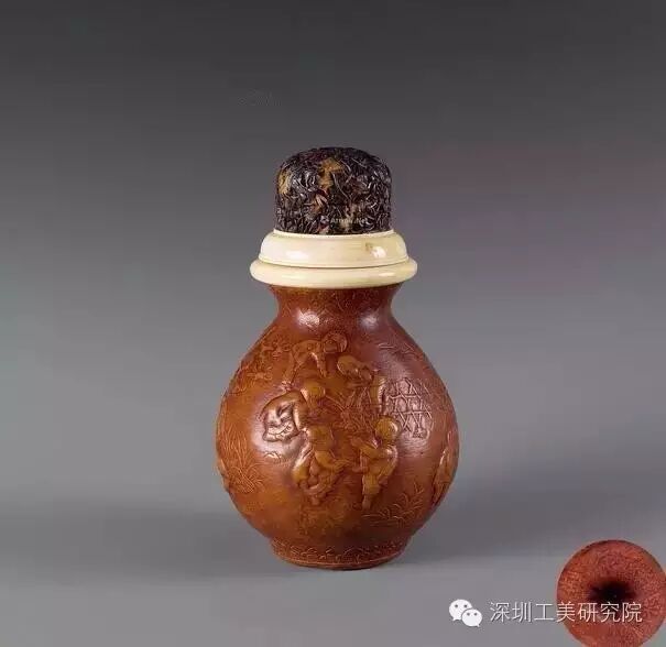 民国 玳瑁芯牙口砑花婴戏图油葫芦虫具