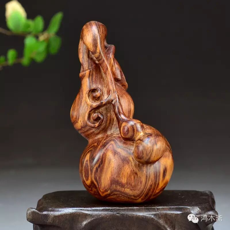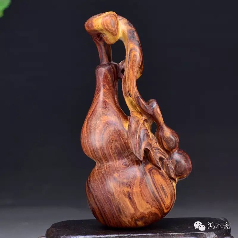 海黄雕刻3寸葫芦 海南黄花梨木福禄手把件把件 孤品