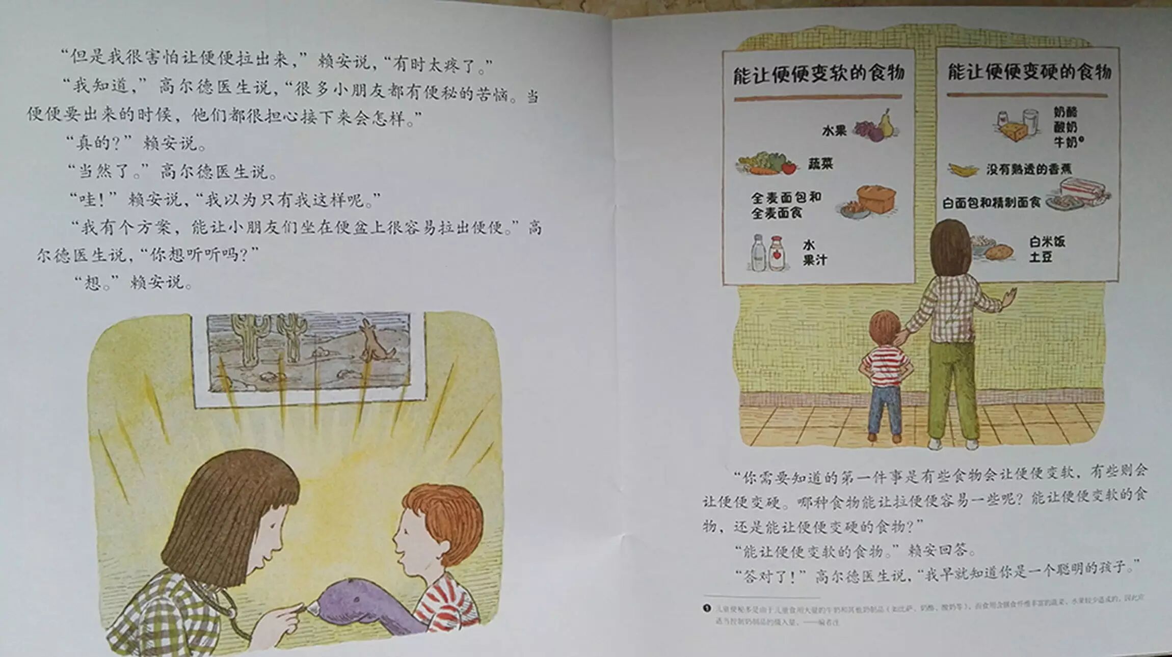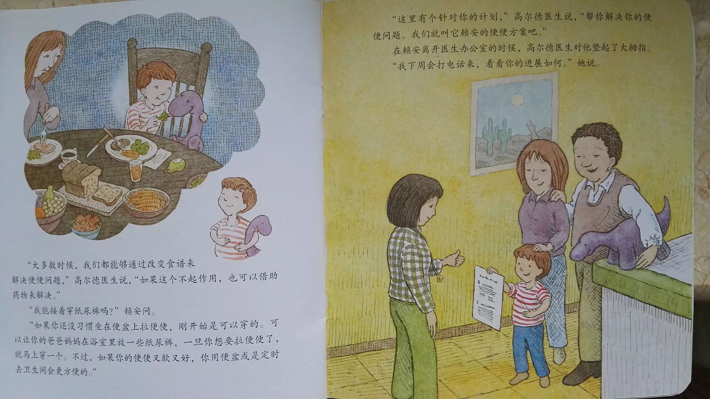 赖安很害怕用便盆。他害怕拉便便,因为他害怕会很疼,虽然他一点儿也不想这样。霍华德J。博尼特博士根据他在儿科临床中对患儿所采取的做法改编了这个故事。对于孩子来说,一次痛苦的便秘经历就会使孩子对顺利排便丧失自信。要让孩子知道,按照“便便方案”的步骤来做,养成健康的排便习惯其实很简单。