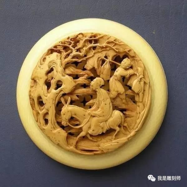 白椰壳雕蒙芯《秋山行旅图》(雕刻大师陈向民作品)