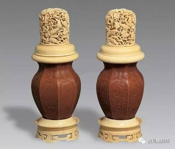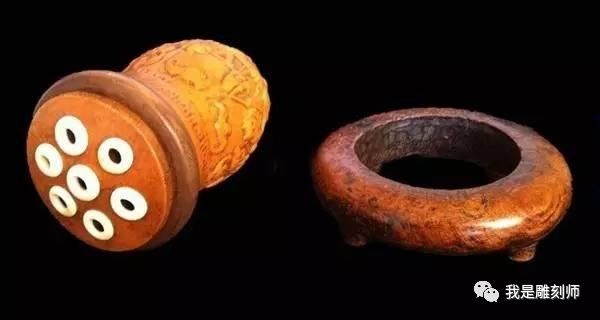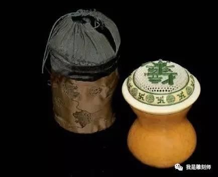 再说说口框。鸣虫葫芦的口框中,木质材料使用最多。蝈蝈、咂嘴葫芦多配单圈加瓢盖,鸡心葫芦也有用与口框材质相同的五眼、七眼盖子(俗称“烧饼盖”)。牙口框使用也较多,但与木口框相比,这种口框精美有余但实用不足,主要因为牙密度较大,养虫上怀难免头重脚轻;另外,北方天气寒冷,养虫倒叫温差较大,牙口框忽冷忽热易开裂(俗称“笑纹”)。
