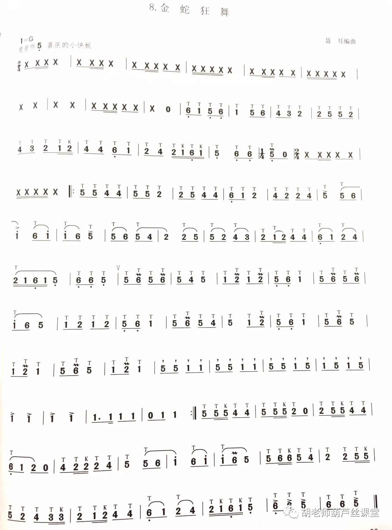 超七孔葫芦丝bB调《金蛇狂舞》唱谱