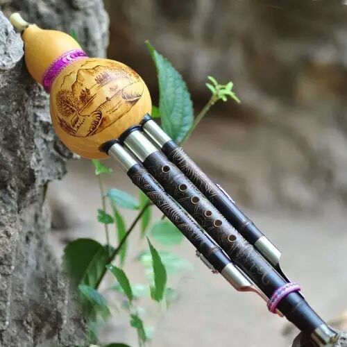 葫芦丝,别名葫芦箫,起源于先秦时代。傣语称“筚郎叨”(“筚”为傣语吹管乐器的泛称。“郎”为直吹之意,“叨”即葫芦),是傣、阿昌、德昂、佤、布朗等族单簧气鸣乐器,属簧管乐器,主要流传于傣、彝、阿昌、德昂等民族中。