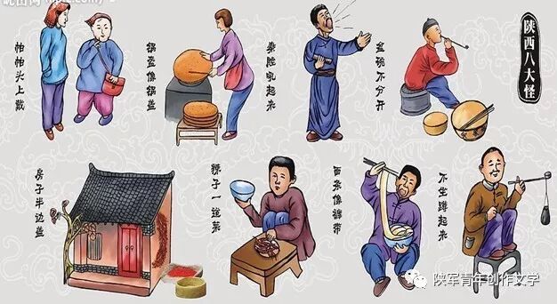 “陕西八大怪”中是一种风俗习惯,主要流行于陕西省的关中地区。由于气候、经济、文化等多方面原因的影响,关中地区在衣、食、住、行、乐等方面,形成了一些独特的方式。有着丰厚历史文化积淀的陕西关中地区,沿袭历史民俗,形成了生动有趣“八大怪”。
