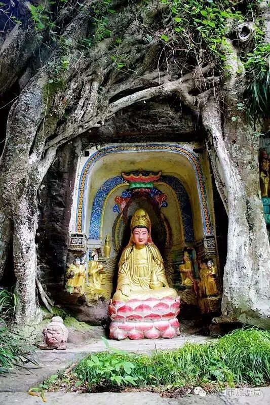 在寺中发现了千余尊神态各异、大小不一的摩崖造像镶嵌在一棵千年榕树的树根之中,形成佛和树相应而生的奇异景观。