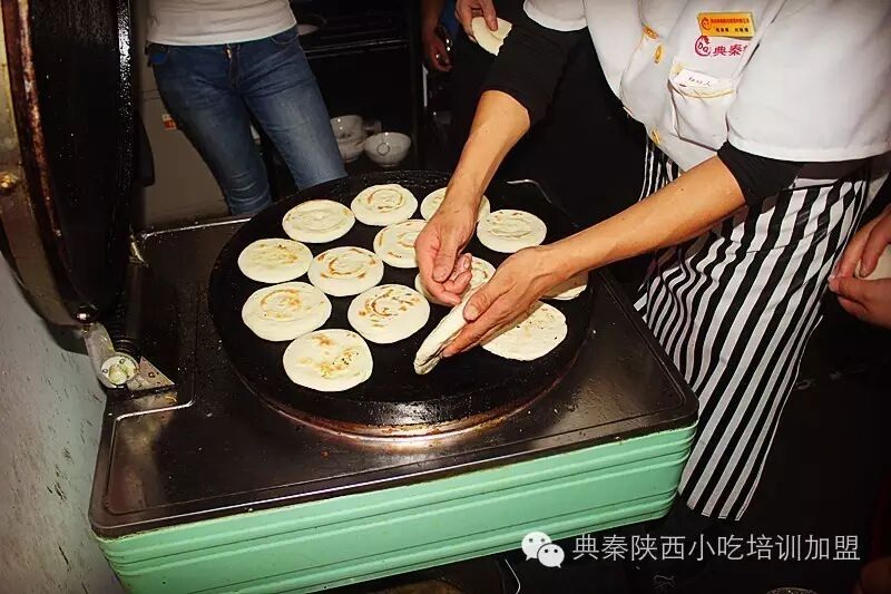 身边的学员都在看师傅打饼,录视频的录视频,拍照的拍照,这种专业的技术就在西安典秦陕西小吃培训学校!