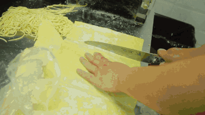 与老北京炸酱面用的干黄酱和甜面酱不同,洪班长用的酱还是有区别的,韩炸酱是用黑豆做的,不过在制作炸酱的时候会加入糖,酱油,勾芡,蔬菜……