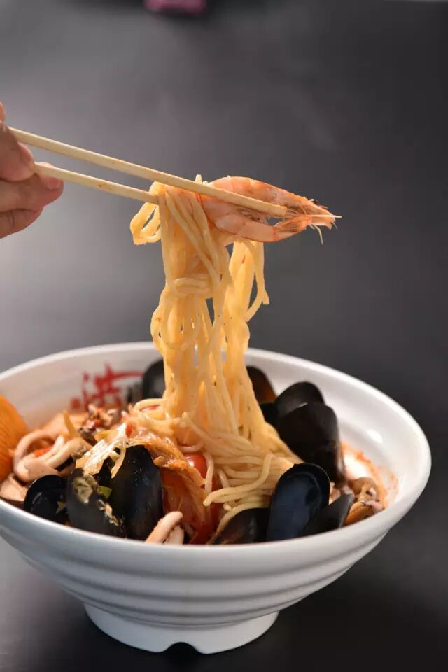 炒码面可不是炒面。炒码面是韩国式的辣椒酱加上各种海鲜。超大一碗,满满青口、鱿鱼、虾…汤汁有点微辣,一口喝下去胃就已经有了暖意。汤汁吸收了海鲜的鲜味,海鲜也饱含汤汁更加入味。超级适合最近大降温的天气!