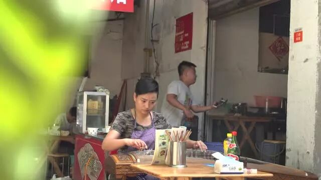 在玉林横街上,一个上世纪80年代的小院落里,有家南充锅盔小店,一到饭点就人潮涌动,到了下午,你又可以听到老板弹古筝的悠扬琴声,这一刻,这条充满烟火味的市井小巷又变得文艺古朴起来。