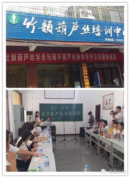 中午聚餐后,两县丝友齐聚“竹韵葫芦丝培训中心”进行交流活动。仪式上,镇平县葫芦丝协会会长王果老师致欢迎词。双方会员谈心得,传技艺,丝韵绕梁,掌声阵阵。分别演奏了经典曲目《竹楼情歌》、《清清玉湖水》及歌曲《荷塘月色》、《唱支山歌给党听》等优秀曲目。社旗县葫芦丝巴乌学会会长李成涛老师做了交流总结,并应镇平协会之邀,现场泼墨写下“赊店玉都,丝韵情长”以作笺言且向镇平会员赠送由南阳朵朵花业公司提供的精美礼物,以示兄弟情深。
