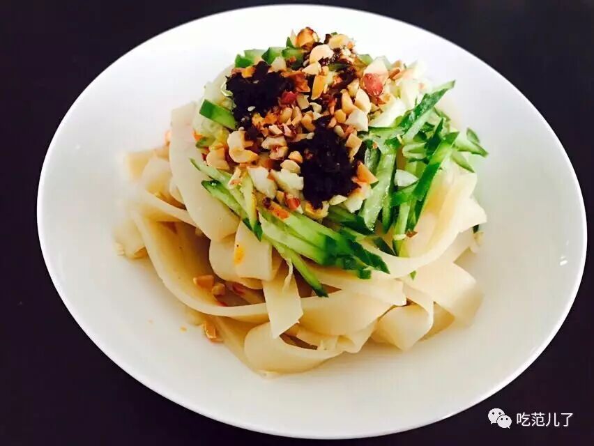 很久之前一个陕西朋友给过制作凉皮的方子搞丢了,好像红薯粉为原料制作的凉皮,当时答应给朋友交作业。拖了这么久,不好意思再和人家要方子。在餐馆吃陕西凉皮时发现凉皮是用面粉做的,吃起来类似面筋的口感。参照网上方子稍加改动,光滑细腻的凉皮配上各式调味和油辣子,香辣入口Q弹爽口,尤其在胃口不佳的季节,吃上一大盘凉皮,过瘾!