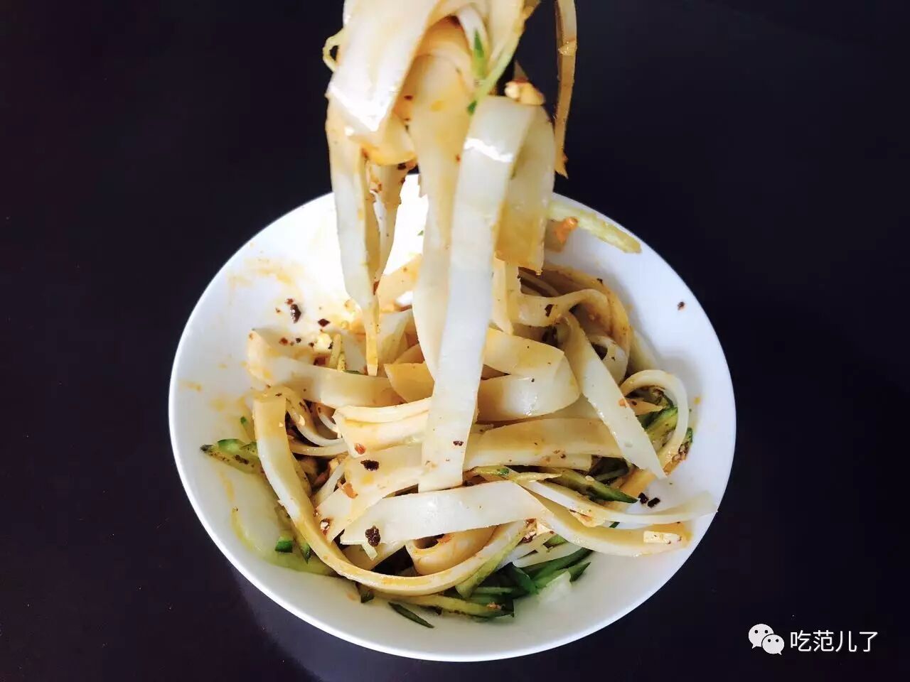 8.油辣子、醋、盐、香油调味品淋在凉皮上即可