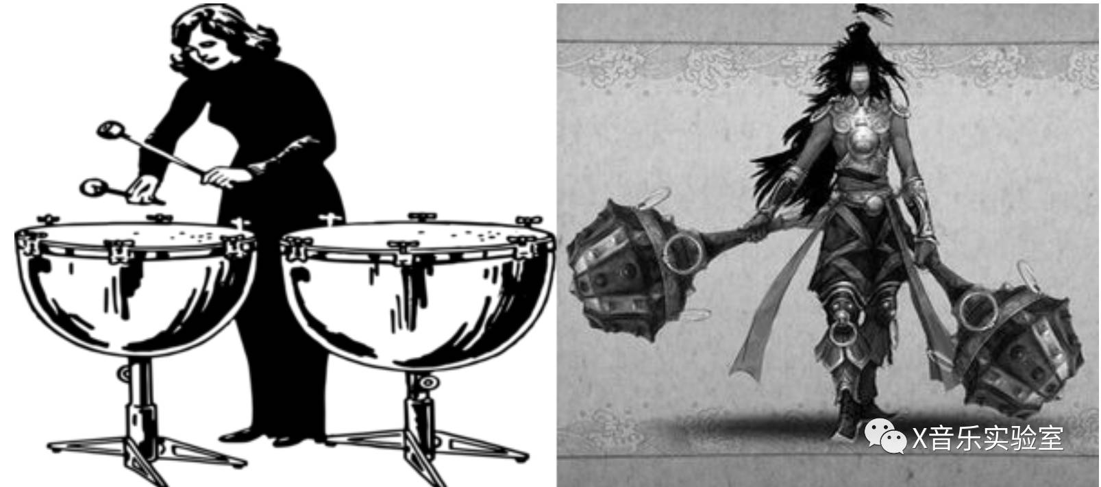 隋唐演义的李元霸手握大锤,力大无穷,打遍天下无敌手。定音鼓在乐团里绝对称得上巨无霸,乐手也是激情澎湃。手中鼓槌进可攻退可守,在排练的间隙经常用作敲击反抗势力的有力武器。