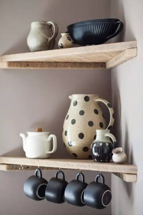 开放式的搁板最适合厨房里面瓶瓶罐罐了