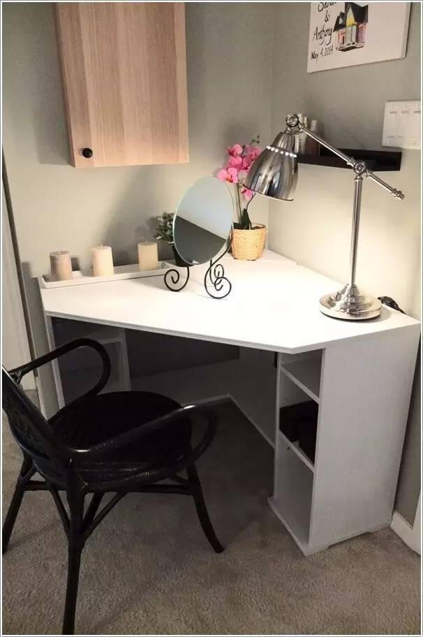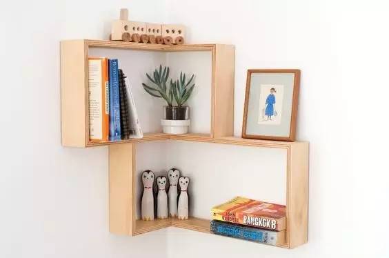 另外,可变化折转的搁板还能利用墙角上方的空间