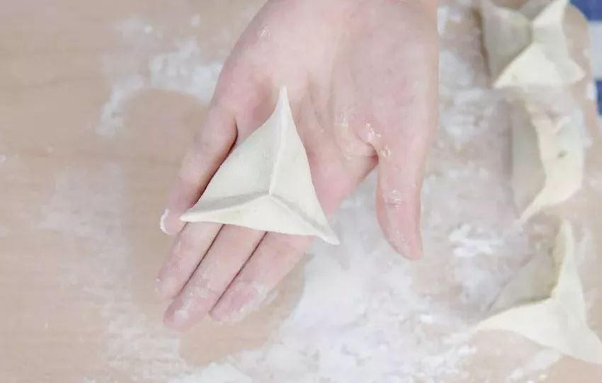 将四边裂口都粘合起来,一个四边形饺子就做好咯,超级简洁美观有木有?!