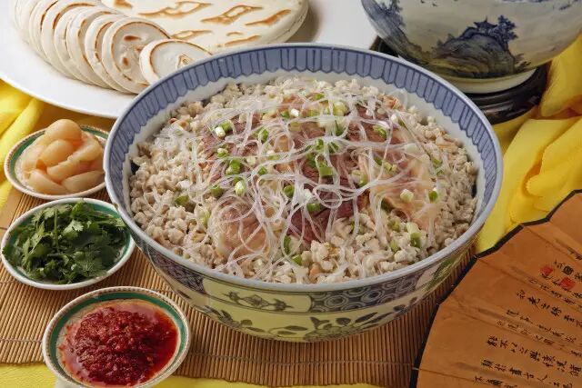 水围城:汤较多,中间为肉与馍,周边被浓汤环绕,十分利口,尤其适合长途劳顿的人食用;