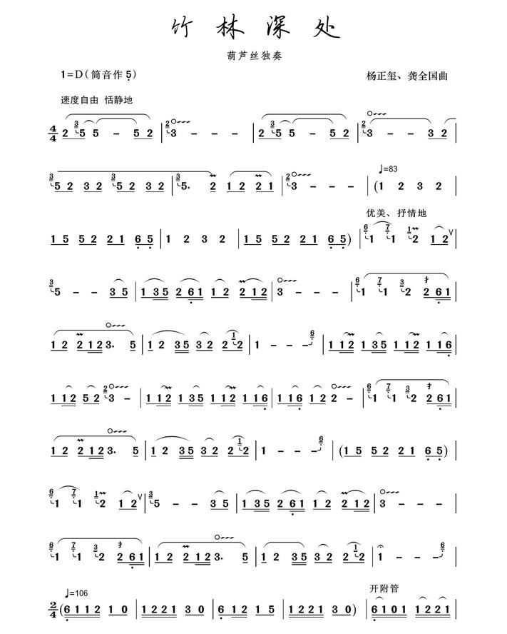 《竹林深处》是云南省著名作曲家杨正玺先生为葫芦丝而作的独奏曲。