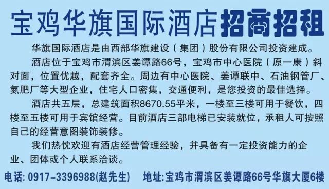 免费信息发布方法: 1、电话:0917-3806633、3203803 刊登。 2、关注公众微信号:baojishxd,提交信息; 3、加客服微信:13891745157 提交信息; 4、加客服QQ号:2791733884 提交信息; 5、手机登陆官网:www.zgshxd.com 下载【向导网】手机客户端APP,在线提交; 6、新浪微博:@宝鸡生活向导,腾讯微博; @宝鸡向导报 @宝鸡生活向导,提交信息。 |