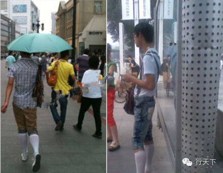 此人戴眼镜、背挎包、走猫步,并且加紧双腿,单看服装还算正常,但是其短裤下面的白丝袜袜却吸引了众人目光。每次莅临滨江道必是短裤白丝袜配搭帆布鞋的装扮已经被人称为白袜哥