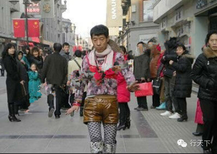 此人有妖娆哥的风格,其穿着更加犀利大胆,故称之为妖娆帝,内衣外穿的这名大叔时不时的还能在滨江道来几段热舞,据说此人不是本地人,流动性甚强