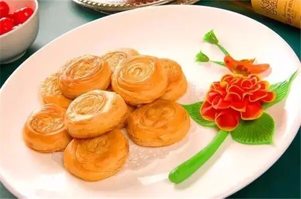 千层油酥饼是陕西汉族特色小吃。色泽金黄、层次鲜明、脆而不碎、油而不腻、香酥适口。相传,油酥饼是由唐代的千层烙饼,经历代厨师不断精心改进而成。经制酥、和面、制饼、煎烤而成。