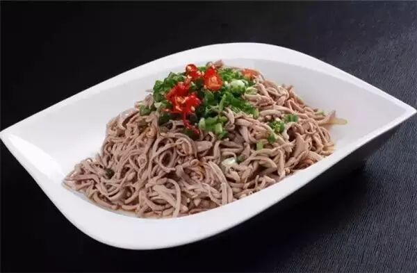 温拌腰丝是由唐代羊皮花丝演变而来,陕西西安著名的汉族小吃。因为用猪腰子和其他辅料、调料、以及温拌的方法制成而得名。它是一款用低档料烹制成高档菜的代表作之一。由于刀工细致,烹调方法考究,制作出的菜肴腰丝脆嫩,姜香、蒜香以及花椒的香味相得益彰,味道浓醇,清爽利口。