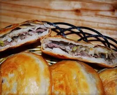 油糊馅饼是一层一层把肉卷到里面。金黄发亮,香气四溢,层层酥脆,形似牛肉饼,又完全区别于牛肉饼。
