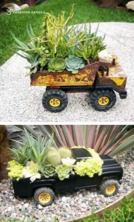 用废旧玩具DIY的植物盆栽