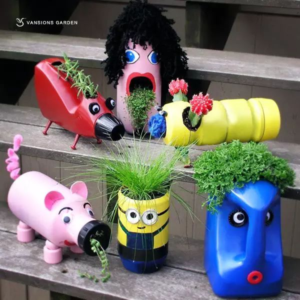塑料瓶制作成的DIY花盆,非常有爱