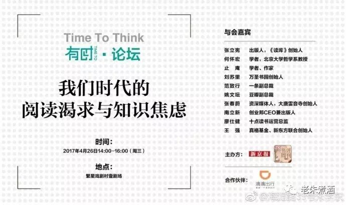 2017年4月26日下午2点,北京宣武门地铁西北口,老朱坐镇,不见不散哦。