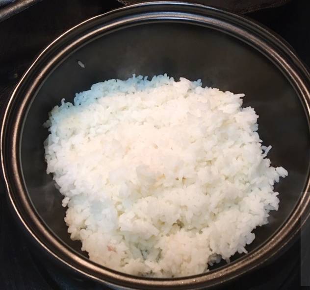 小砂锅底部倒一层香油,然后把米饭铺上。