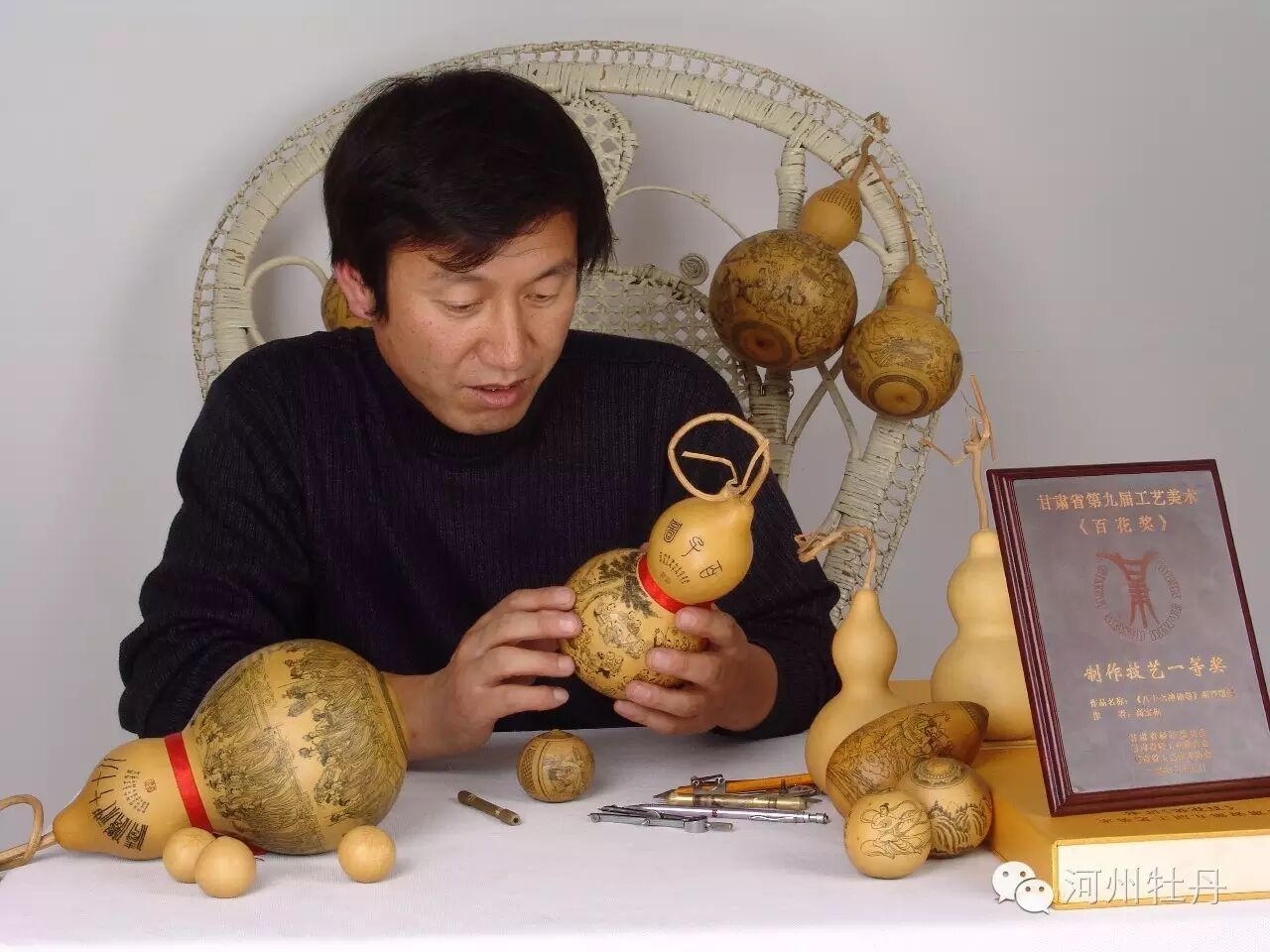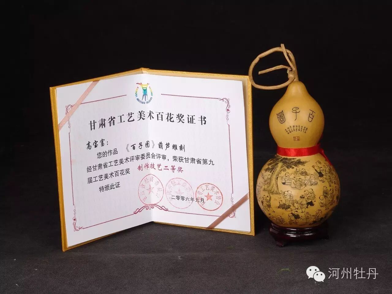 “十七八学了个画匠,二十岁上学了个葫芦匠,四十岁上捧了个金奖”。这是高宝福的自画像。高宝福的主要代表作《八十七神仙卷》获得了2006年甘肃省第九届工艺美术“百花奖”一等奖;《百子图》荣获二等奖。