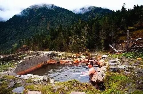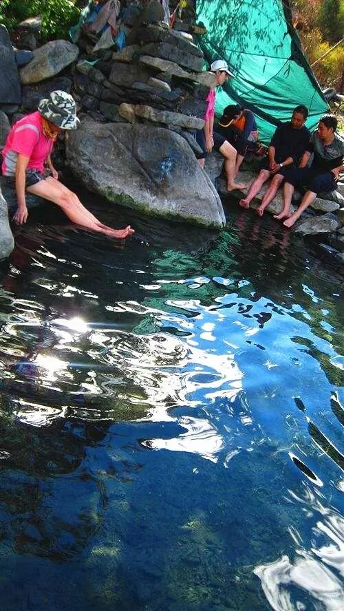 从葫芦海回到党岭营地休息一会,大家就相约去村子上吃晚饭。晚饭后,可以约上几个伙伴去温泉泡泡,洗尽今日徒步的疲劳。温泉池周围是茂密的原始森林,风景优美,置身于池中,尽情享受温泉之趣。