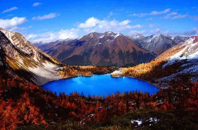 党岭位于横断山系大雪山脉北段的党岭山,雪山相连、气势磅礴。满山遍野的彩林,雄奇壮美的雪峰,星罗棋布的碧蓝海子。