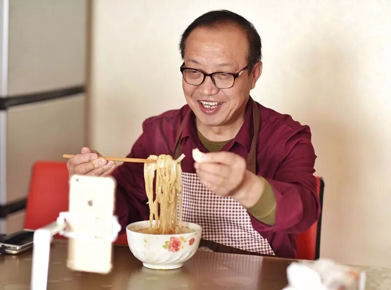 去年9月份,老乔的儿子小乔,在直播平台上放了一段老乔做陕西美食的教程和吃饭的视频,相比别的美食博主多机位拍摄、繁琐细碎的制作过程,老乔不到1分钟的教程言简意赅、一口醋溜陕普显得尤为亲切、朴实,因此受到网友们的关注。