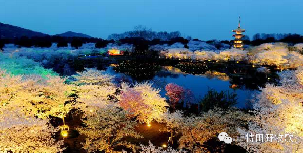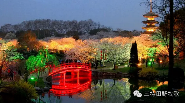 东湖樱花园是全国唯一可夜间赏樱的地方,白天赏樱灿若云霞、落樱缤纷;夜间赏樱,流光溢彩。