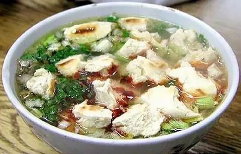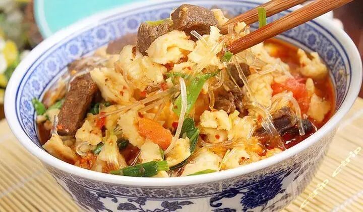 煮出来的馍酥软光滑,吃碗馍和肉后,碗底只剩一口汤,所以叫“口汤”。