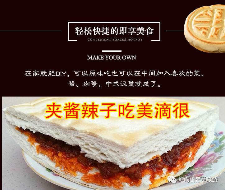 如今,锅盔已成为平凉有名的干粮,来平凉旅游的八方游客,无不想尝一尝锅盔的味道;平凉人不仅开发出了椒盐锅盔、葱香锅盔、五香锅盔等各类锅盔,而且还不断推陈出新,将锅盔与油泼辣子、辣椒酱、葱花、韭菜末、香菜末一并端上餐桌,使得锅盔更加生色,更加诱人:瓤酥而脆,悦目而香。像极了平凉人的性格:朴实无华、老实厚道、内敛磅礴、粗犷豪放!