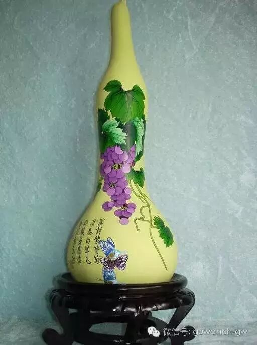 彩绘葫芦是在刮光外皮的葫芦上,以工笔手法画人物或花草鸟兽,其色彩或艳丽或淡雅,彩绘后的葫芦上再涂上一层透明清油,使之通体光亮,圆润可爱。彩绘葫芦的图案多为“天官赐福”、“麻姑献寿”、“刘海戏金蟾”等吉祥内容。
