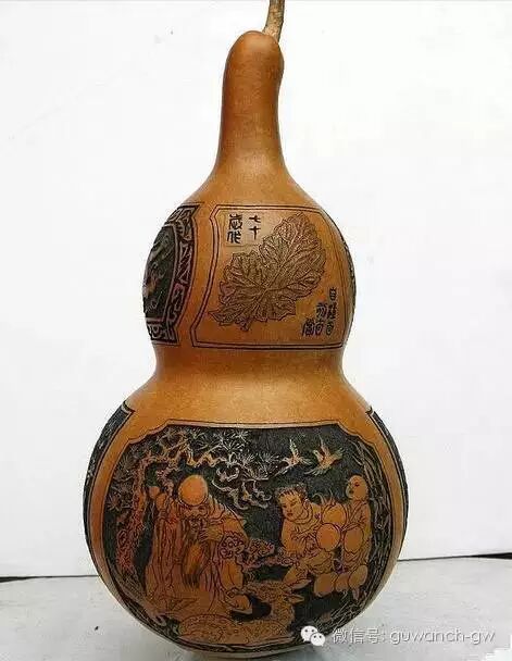 镂花葫芦多被藏家作为文玩收藏。浮雕葫芦也叫剔花葫芦,是线刻与剔地相结合的表现形式。制作剔花葫芦先用线刻法勾勒画面,然后将线刻以外部分剔掉,使之呈现出浮雕的艺术效果。这种工艺还往往采用多层浮雕技法,以产生交错重迭,玲珑剔透的美感。
