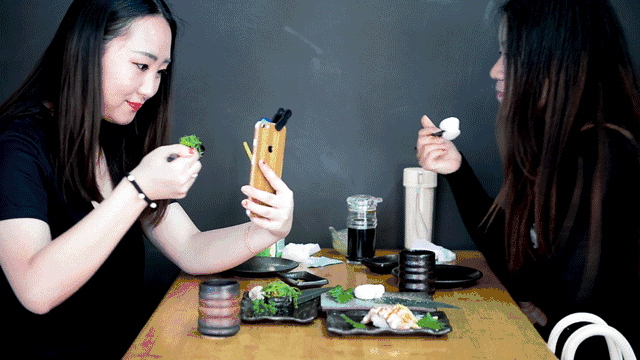 店内的食客与我一般,早已吃嗨,迫不及待与美食合影。好的东西素来是要分享的。