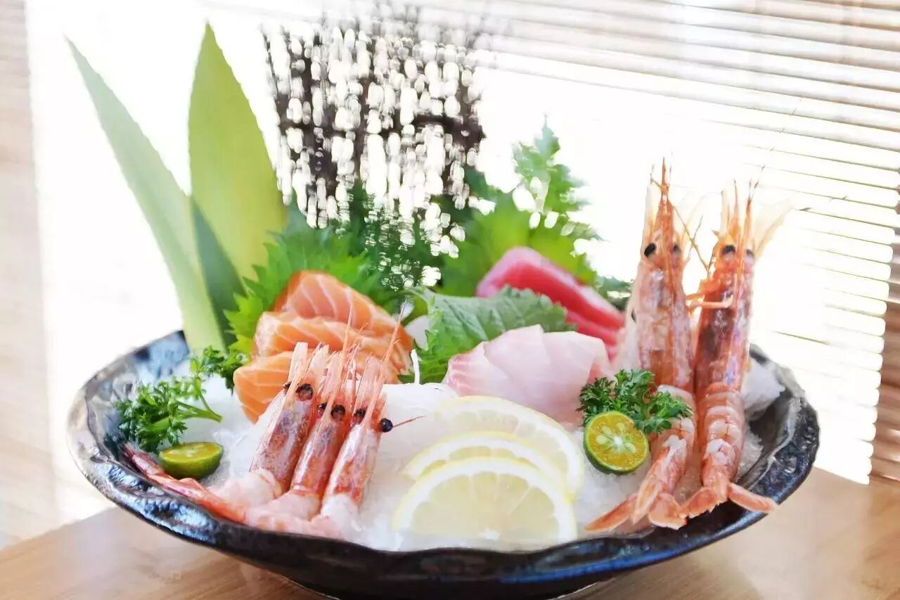三文鱼、鲷鱼、北极甜虾、金枪鱼、赤海虾,这一盘诱惑实在惹人欢喜。我赶忙调开酱油和芥末,尝上一块。