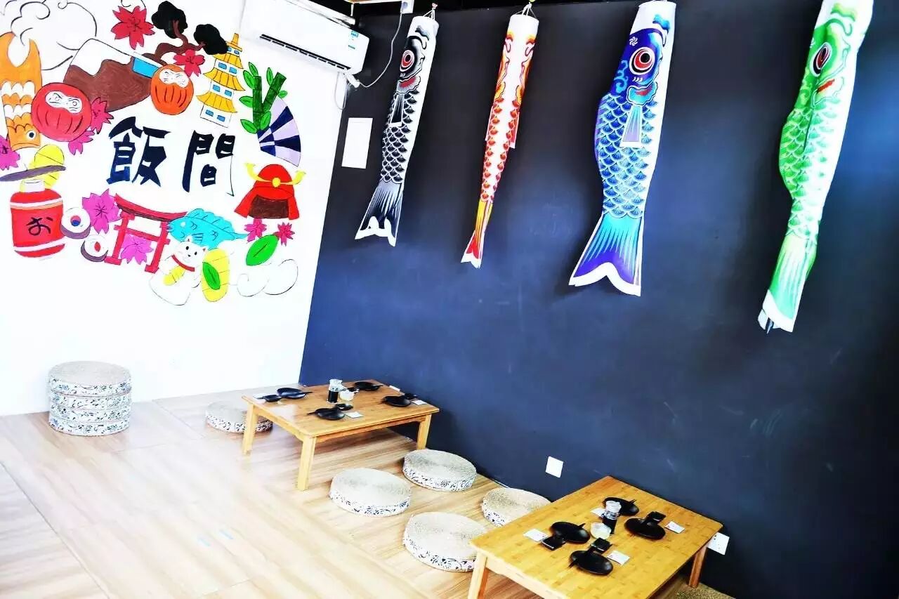 再往里走,是榻榻米。我一直认为,最佳的体验,是入乡随俗。看着摇曳的鲤鱼旗,盘跪着腿,细数着墙上的日式文化,心有所感吃着日料,必是别有风味。