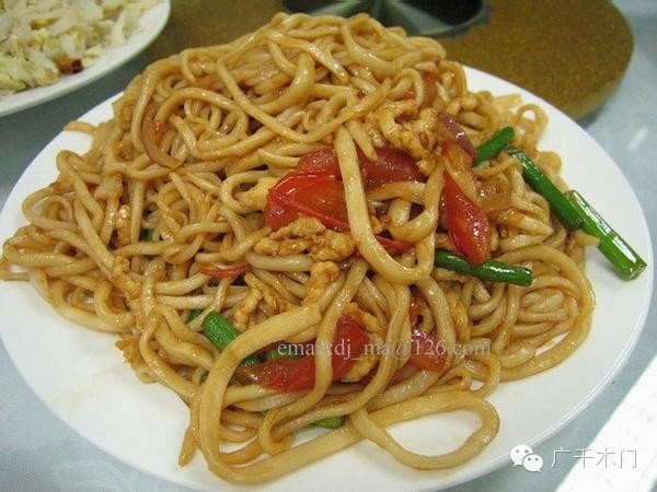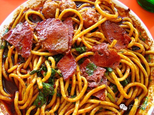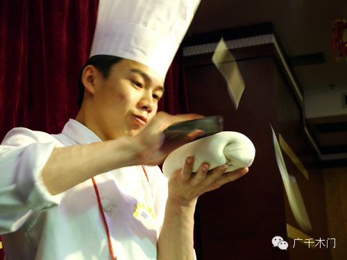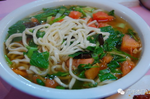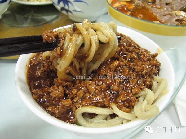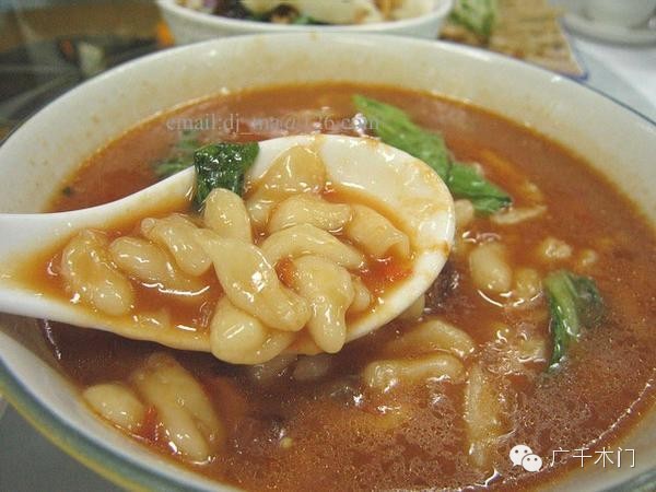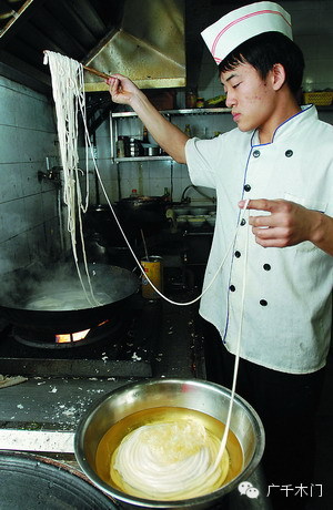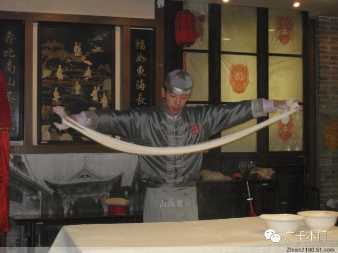 见识下他们的刀功~~大部分的山西面馆厨师可以吧一团面顶在脑袋上,一手一把刀将面削进远离自己4~5米的大锅里~削的薄如纸片~~![]()