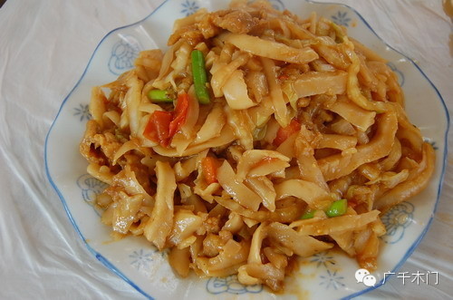 是山西住户人家的日常主食,做法的高下,调味的好坏,就很难有一定的标准。一般而论,猫耳朵极像意大利的一种做成贝壳形的通心粉。猫耳朵是把面和得软软 的,搓成大拇指的条子,再压成蚕豆大的小块,然后用拇指食指捏着一转,便被卷成像猫耳朵一样。在开水里煮熟它,捞起来再配作料大火一炒,耳卷里吸存着汤 汁,味道饱和,吃起来十分鲜美。配料各随其便,一般人家爱用韭菜肉丝和虾米,就很够味,讲究的用虾仁、蟹肉、冬菇、火腿,就随心所欲,没有止境的了。