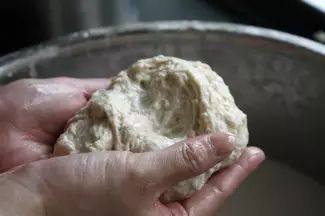 4.揉到面水很浑浊了就换一盆水,之前洗面留下的水不要倒掉,统统倒入一个大锅里留好了。过会儿还能派上用场呢。