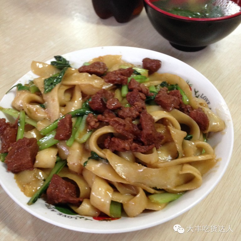 在总店吃了汤面,再来个炒面吃吃看,刀削面一样的筋道,厚厚的很Q弹很有嚼劲,咸鲜微甜的口感应该很符合大丰人的口味,红烧牛肉都是小块的,稍微有点偏咸,还配了一碗汤哦,总的来说很不错!一碗就管饱!