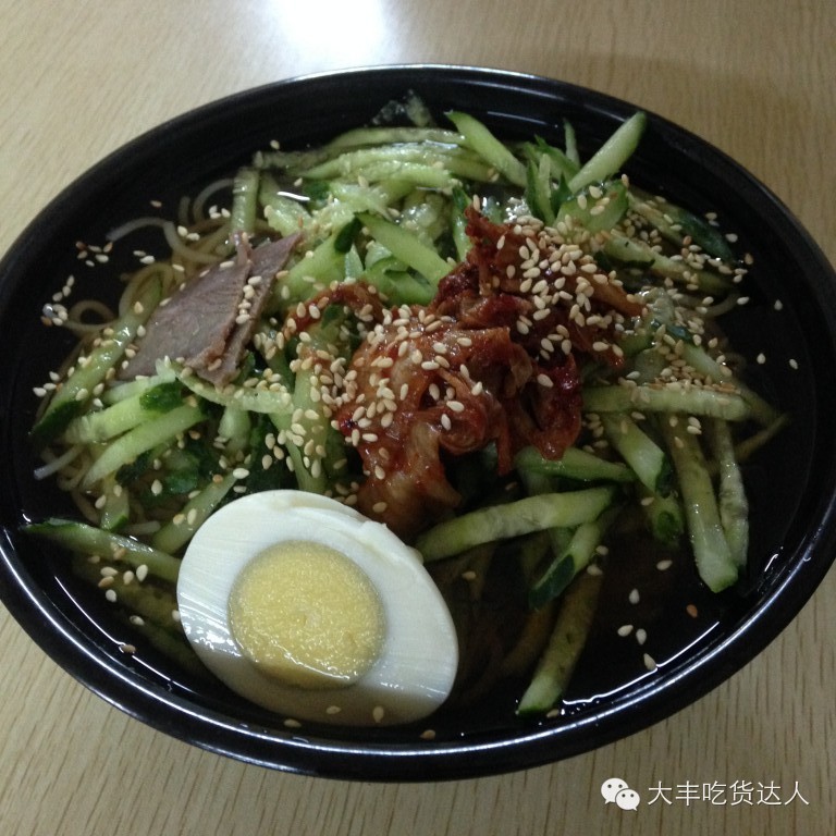 朝鲜冷面不同以往的面,是酸甜口儿的,吃了第一口以后就胃口大开,因为朝鲜冷面是用冰水、加糖、醋和其他佐料调制好汤头,然后再放入东北特有的冷面面条,不同平时的面条软软的一咬就断,这个特制面条是非常爽滑非常有劲道的,配上特调的冰冰凉的汤料,加上牛肉的点缀、芝麻的醇香、黄瓜丝、泡菜,这酸爽,绝对是夏天最好的美味之一!妈妈再也不用担心我夏天吃面出汗了!哈哈!(适合口味偏甜的朋友)