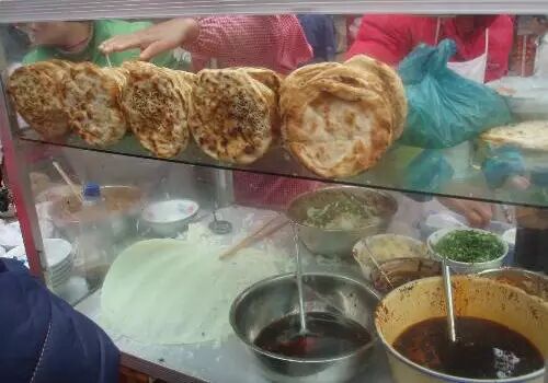 这份让这么多四川人都念念不忘的美味小吃,就是成都重庆都难找的——南充锅盔。南充锅盔是什么?不是四川人,生生错过这种美食二十多年的小编,也是请教了专家才弄清。相传当年武则天修建乾陵,工程浩大,参与建筑的士兵和民工非常忙碌,几乎连做饭的时间都没有,就随手以头盔为炊具来烙面饼,这样制作的面饼则因此得名“锅盔”。锅盔烤制之前面团上涂抹过油盐(有时还有花椒粉和辣椒面),烤好之后又脆又香,里面适合夹各种馅料。在南充,锅盔里一般夹的是凉粉,不过,夹肉和菜的搭配也很常见。